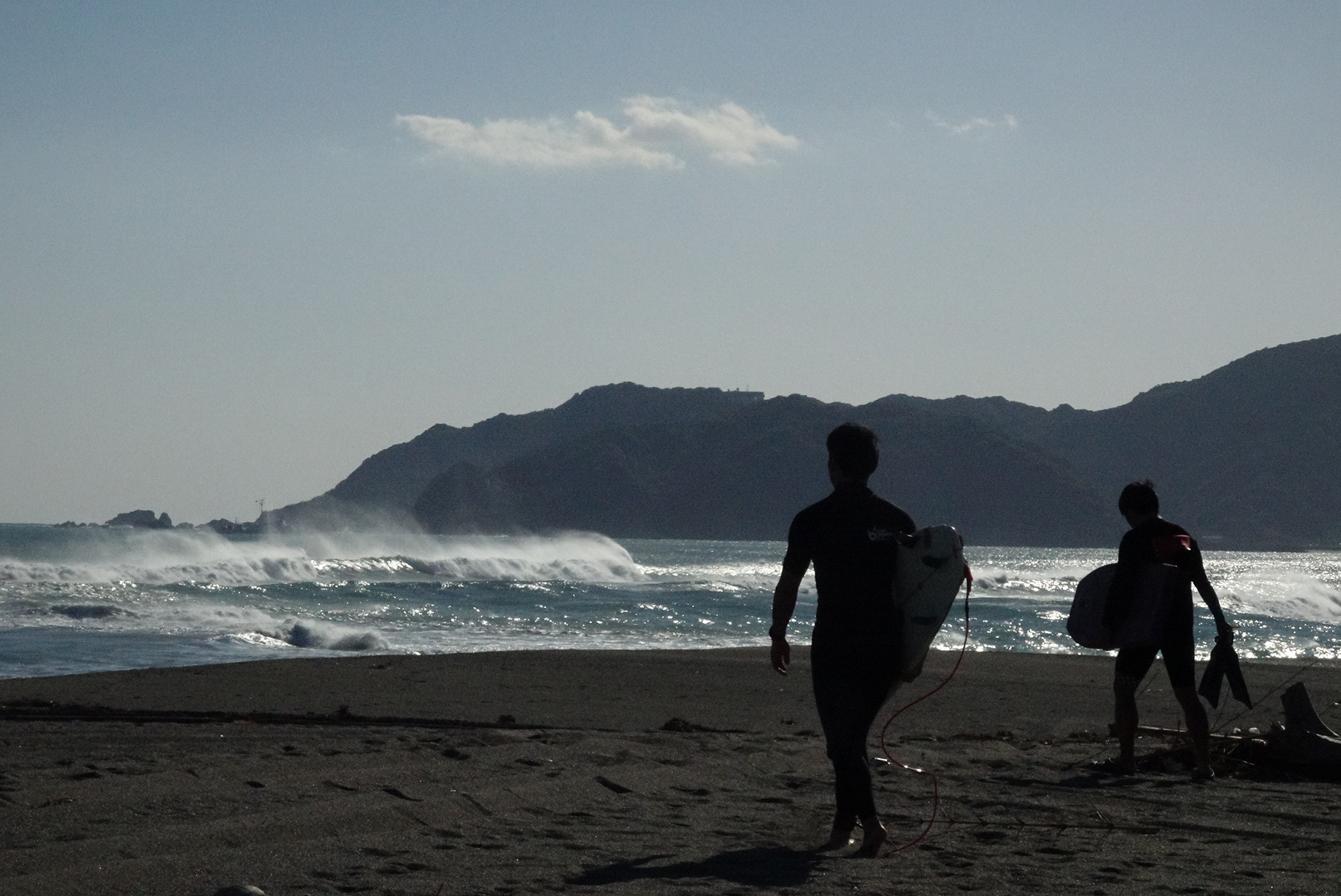 福島から高知へ家族で移住したアベ君と数年ぶりの再会し、まず朝一から2人で波探し